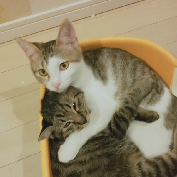 | 特徴(性格など) | キジ(フワくん) キジシロ(ワカちゃん) 二匹とも人馴れ抜群です!抱っこが大好きです。膝の上で良く寝てます。ワカちゃんは初めての人に抱っこされてもゴロゴロ止まらないです。 健康状態 とても健康で元気です 避妊去勢手術 ウイルス検査(エイズ・白血病)陰性 ワクチン(2回) 駆虫 検便 シャンプー 爪切り |