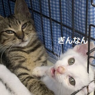 | 特徴(性格など) | 仮の名前を かぼちゃくん 柄はきじ やんちゃです。 ぎんなんくん 白 おっとりめ お外産まれですが、怖がる事なく、良い子です。 |