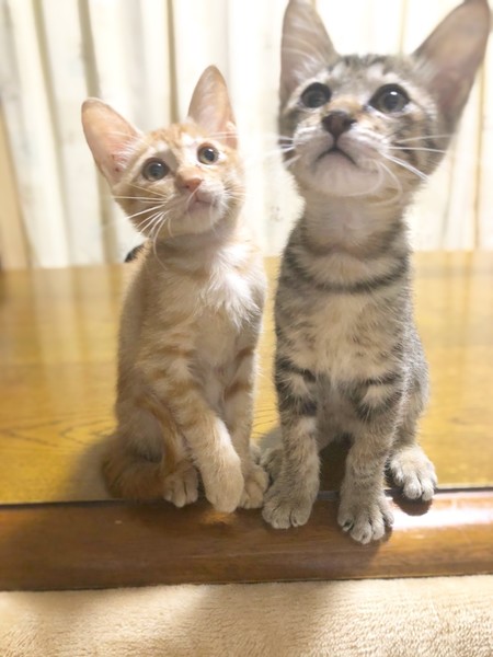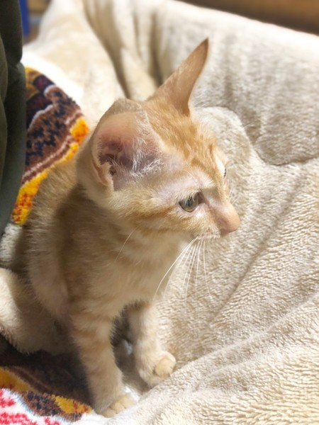 | 特徴(性格など) | 茶トラの女の子です。 保護当時はまだ目も開いていない状態でした。 ミルクボランティアさんに育てて頂き大きくなりました。 人が好きで座っていると膝に乗って来てくれます。 女の子なので現在は、とわくんより少し小さいです。 できるだけ兄妹で飼って頂ける方を募集していますが 1匹でもご相談下さい。 元気にしています。 もうすぐエイズ白血病検査、ワクチン接種をする予定になってます。 |
