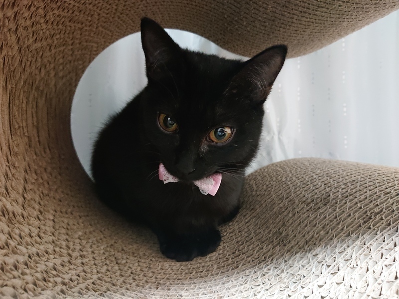 | 特徴(性格など) | 2020.8.8生まれ(推定) 毛色:黒 尻尾がスーッと長く、ツヤツヤな毛並みが素敵な女の子。子猫らしく元気に走り回って、遊んでいます。 大人猫が大好きで、控えめな声でウニャウニャ鳴いてかわいく甘えています。 ちょっぴり臆病なティオ。ナデナデされるとゴロゴロいっちゃうし、手もペロペロしてくれますが、抱っこはまだ怖いようです。普段は人間と一定の距離をとって行動しますが、じっとしている時は近くに寄って来てくれます。ぐっすり寝ている時は、触りたい放題です♡ 食欲は旺盛!! ゴハンの時間になると、普段出さない大きな声で鳴いて一生懸命アピールします。その時ばかりは人間よりゴハン!!近くから離れません笑 そんなティオと、ゆっくり距離を縮めて下さる優しい里親様を募集しています! |
