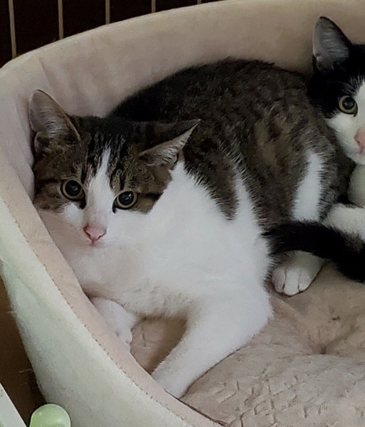 | 特徴(性格など) | フワフワで丸顔の白黒ハチワレ女の子 かわいい白キジのハチワレ女の子。 健康状態良好、食欲旺盛です。 少し人見知りなところはありますが、おとなしく抱っこされています。 |