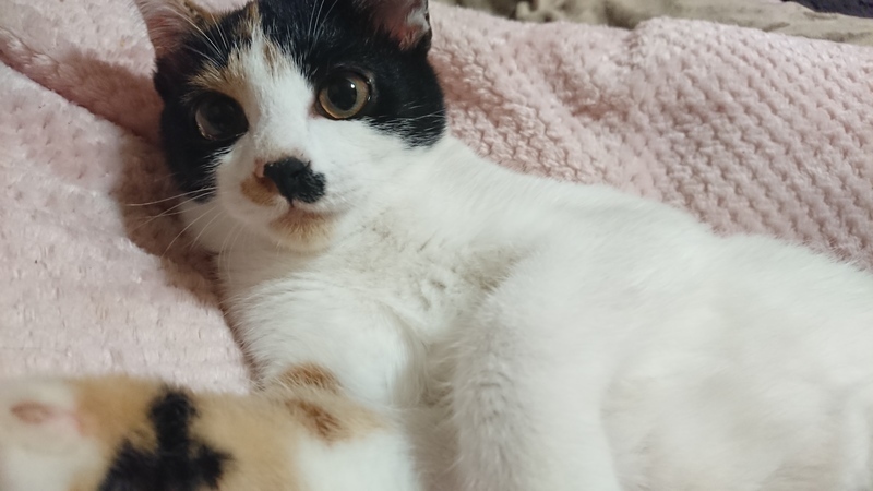 | 特徴(性格など) | ミケ柄です。甘えん坊ですごく可愛くて元気っ子です!甘えてる時はゴロゴロしてめちゃくちゃ可愛い!鼻の所にちょび髭みたいな柄がチャームポイントです! | ||