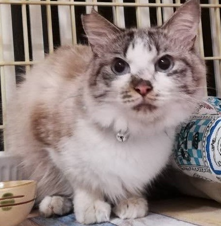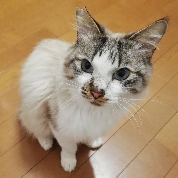 | 特徴(性格など) | シャムカラーのやや長毛種、綺麗なブルーアイ 洋猫風なのに、尻尾だけジャパニーズボブテイル 性格は、甘えん坊のおしゃべり好き、やんちゃっ子なワガママ王子^^ 保護した当時は、ケージから出て来られないほど固まっていて怖がりでしたが・・・ いまや、肩や背中に飛び乗ったり、人の顔や首を抱きしめてキス攻撃をしてきたりと、ラブアピールが激しいです(笑) シャンプーもおとなしくさせてくれるとっても良い子ですよ♪ |