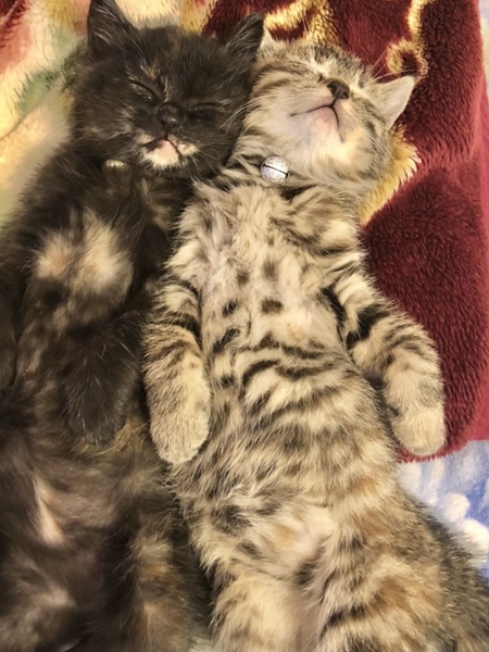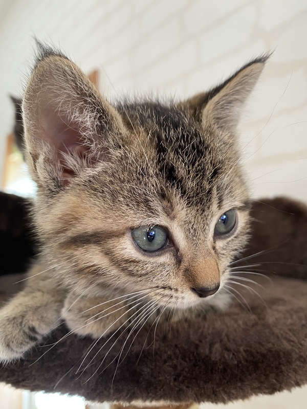 | 特徴(性格など) | キジ虎柄の中に赤茶色の毛が混ざり 尻尾は、真っ直ぐです。 500gの時に、倉庫の中で 保護しました。 人慣れしており 甘えて可愛ぃですょ。 家族の一員に、してあげて下さい。 |