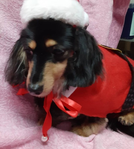 | 特徴(性格など) | 仮名前:メイプルちゃん 犬種:ダックス(ブラッククリームロング) 性格:怖がりさんです。 |