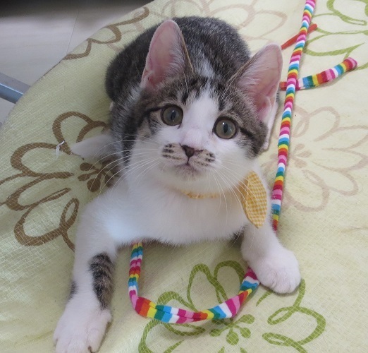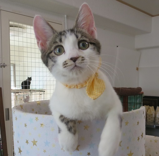 | 特徴(性格など) | 赤ちゃんの時に兄弟3匹で捨てられていて保護され、人の手で育てられましたので、 怖がることのない天真爛漫な可愛い子に育っています。 大変に人が好きな子で、夢中で遊んでいても呼ぶと飛んでくるし、自然と傍に来てい る様な子です。人との垣根がなく本当に可愛いです! 愛情いっぱいに、ネコ可愛がりして頂ける飼い主さまとのご縁を心から希望しており ます。 |
