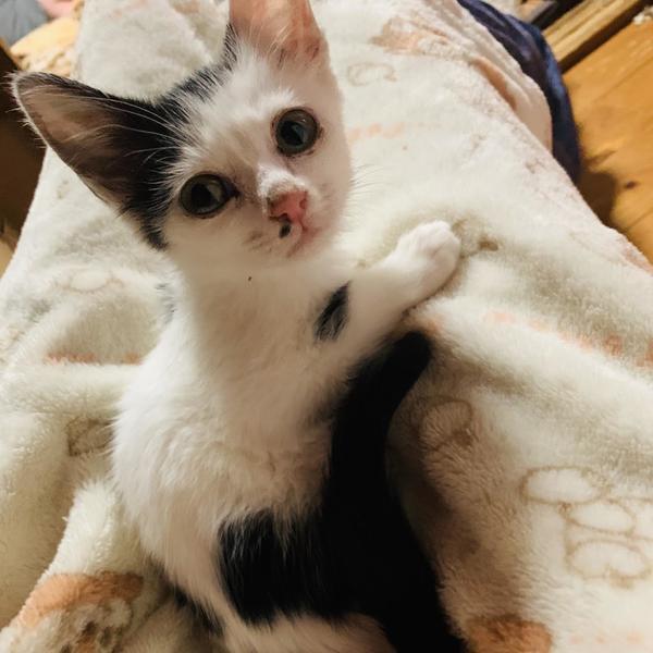 | 特徴(性格など) | 抱っこが大好きで、撫でるとすぐゴロゴロ言っちゃいます。 保護当時ははぐれてしまったママ猫を探し探し、声がかすれるまで呼んでいました。 すっかり人間のママに慣れて、可愛い声を取り戻しました。 見た目もとっても個性的。成長をぜひ見守ってください。 |