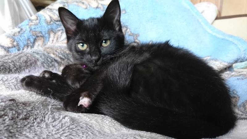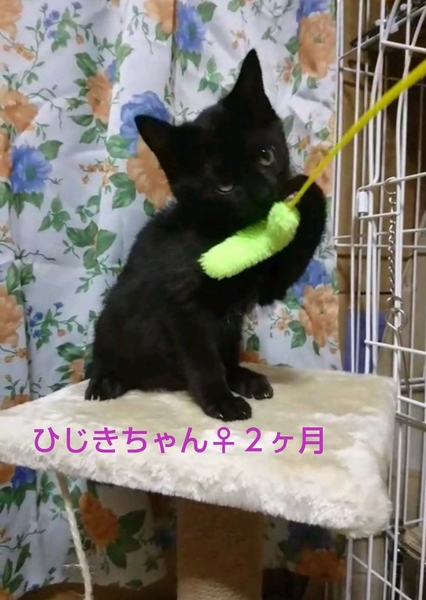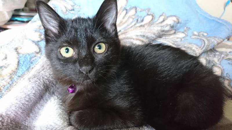 | 特徴(性格など) | 写真では真っ黒にみえますが、お腹に白い毛もあり、薄い茶のシマも見えます。 大きくなるにつれて変わってくると思います。 |