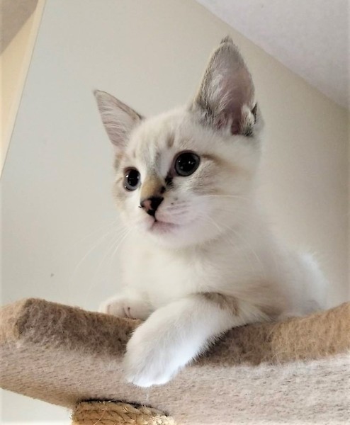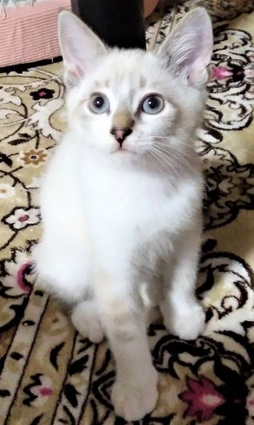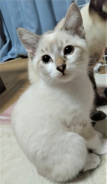 | 特徴(性格など) | 仮名: マロくん(オス) 毛色: シャムミックス風 性格: 兄妹の中で一番体が大きく、兄妹よりは大人の猫と良く遊んでいますので、先住猫がいるお家でも大丈夫です。 産まれた時から人が傍らにいたので、とても人馴れしています。 ノミ取り済 検便済 駆虫済 3種混合ワクチン済 猫エイズ・白血病ウィルス検査はともに陰性です。 |