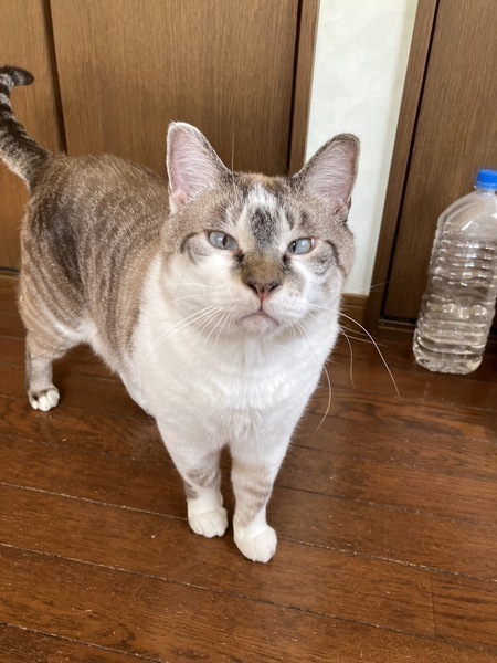 | 特徴(性格など) | ◆にじゅうくん ○海老名市の144匹多頭飼育崩壊現場より保護しました。 ○より目がちの青い目がとても綺麗な大きめの男の子です。 ○年齢は8歳ぐらい(2023年12月中旬時点)。ただし、保護の状況的にあくまでも推定であることをご理解ください。 ○穏やかなタイプですが、猫じゃらしでよく遊びます。 ○触ることができます。 ○人よりも猫に甘えにいくタイプです。 ○ウェットフードが大好きな、食いしん坊さんです。 ○長くてまっすぐな尻尾の持ち主です。 ★ワクチン、不妊手術済み。 ★猫エイズ、猫白血病ともに陰性。 ☆単身または高齢のかたはご相談ください。 ★★お見合いを設定することも可能です。まずはお申込みください★★ |