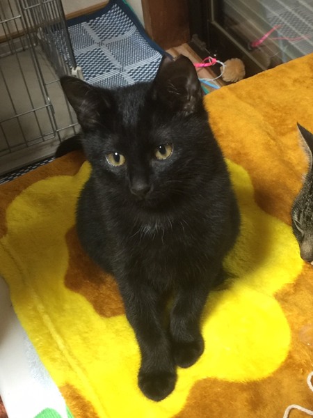 | 特徴(性格など) | 色→黒 性格→慣れるまでに1ヶ月ほどかかりますが、慣れれば、ドア開けただけで尻尾立てて寄ってきます。 慣れると口数も多くて、よく鼻歌歌ってたり、お菓子くれーと寄ってきます。 (鳴き声聞いて、勝手に私が脳内変換してるだけなので、本人は鼻歌歌ってるつもりはないとおもいます笑笑) おもちゃで遊んでほしい時は おもちゃの前でお座りして見つめてきます笑笑 本当に可愛くて可愛くて仕方ないです! 慣れるまでは、シャーと威嚇したり 軽い猫パンチ繰り出してきたり それでも無視して撫でようとすると 噛もうとしてきますが、噛みはしません笑笑 可愛いくまモンなのですが一つだけ トラウマがあります。 保護されて少し経った頃に検査の為 近くにある、家でやってる動物病院に連れて行きました。 そこで、獣医の持ち方が悪く、ネットから くまモンは飛び出て、いきなり知らないところに 連れていかれた挙句、知らないデカいおじさんが見えて ビックリし、診察台から飛び降り、薬棚の裏に隠れました。 獣医が豚皮の手袋をして、棚から引っ張り出した際、物凄い声でくまモンは鳴いておりました。 そんなくまモンをみて、ごめんね。や、かわいそうな事したねという事なく、その獣医は、この子達二度と連れてこないでね。と一言。二度とこんな病院には行きませんが、その日を境に、くまモンは、洗濯ネットを見ると 逃げて、捕まえようとすると唸る様になりました。 タオルをかけて包む様に持ってタオルごと ネットに入れてあげれば、暴れたり、怒ったりはしませんが病院の先生が見えると、めちゃくちゃ怒ります。 上記の方法で三回は病院に連れて行って 無事に診察も終わっているので大丈夫なのですが ネットに直接入れるのは、もしかしたら 難しいということと、獣医さんによっては、怒る子はお断りという方もいるので、くまモンを迎える際は 動物病院のことも考えてもらわないといけません。 こんなくまモンですが、可愛いと言ってくださる方 いらっしゃいましたら 是非くまモンを家族として迎えて頂きたいです。 |