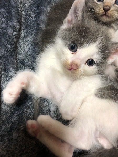 | 特徴(性格など) | 白ベースに灰色のハチワレ | ||