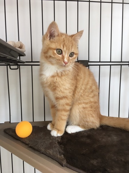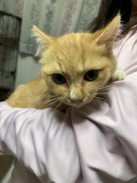 | 特徴(性格など) | 茶トラに、少し白が入っています。 まん丸お顔で、とっても可愛いです まだ少し逃げようとするところもありますが、撫でるとスリスリゴロゴロと喜びます♪ 抱っこも嬉しくてゴロゴロと喜んじゃいます♪♪ |