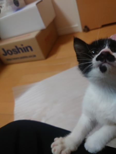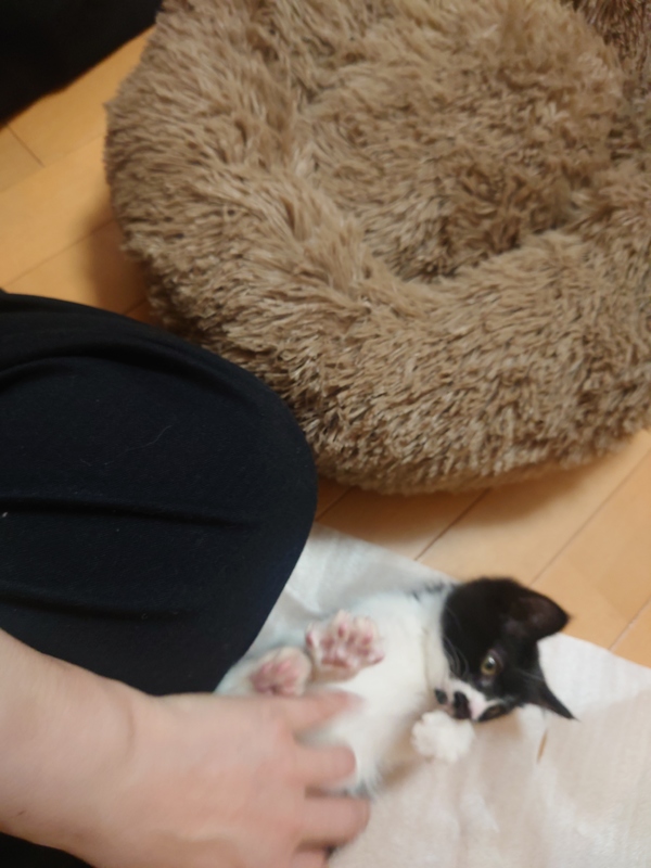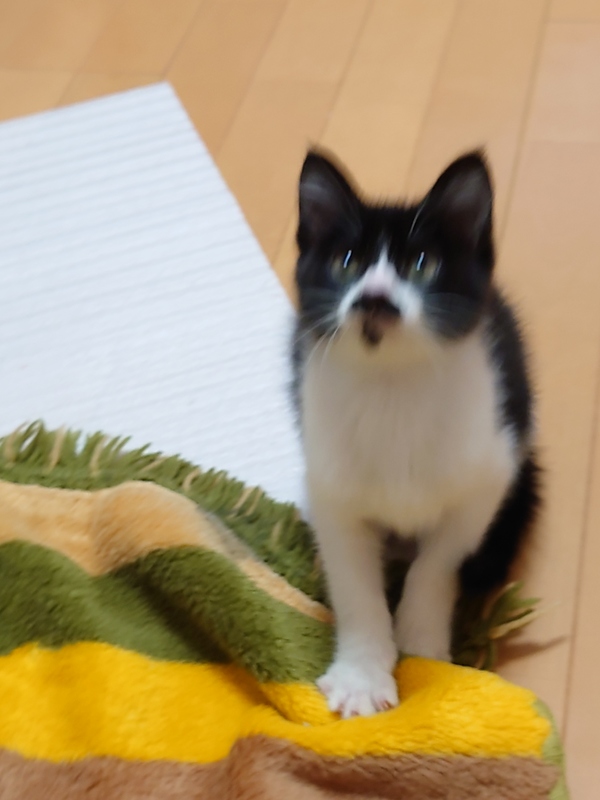 | 特徴(性格など) | 黒白。とても、元気な仔猫です。犬の様に、呼ぶと来ます。遊ぶのが大好きです。光り物が大好き。悪さは、全くしません。殆ど鳴きません。ずっとゴロゴロ喉を鳴らしています。ずっと、後ろをついて歩きます。べったりな子猫ちゃんです。 | ||