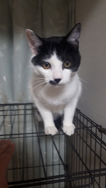 | 特徴(性格など) | 7/28生まれ、白黒ハチワレチョビヒゲありの男の子です。 4兄弟のうち2頭を保護した際に家から脱走。一緒に逃げた兄弟と近所で過ごしていましたが、昨年末に一緒にいた兄弟が行方不明に。 近所の方と話し合い、この子を保護しました。 おっとりして誰にでもフレンドリーです。おデブのせいか高い所が苦手です。 食欲旺盛なので肥満に気をつけてあげて下さい (現在4キロ) 白血病、猫エイズ陰性、駆虫済み、5種ワクチン接種、猫エイズワクチン接種、去勢手術済み |