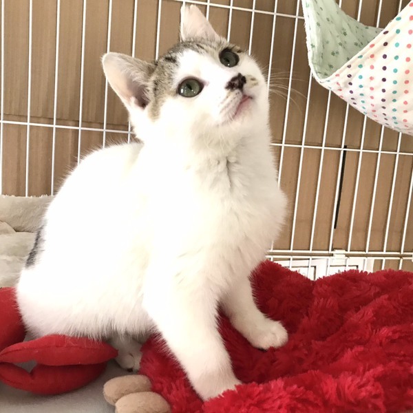 | 特徴(性格など) | ◆ロワちゃん ●月齢の小さな子猫は、以下の条件についてご了承の上で応募をご検討下さい。 ◆高齢者のみのご家族からの子猫のお申し込みはお断りさせて頂きます。 ◆お留守番の少ないご家庭を希望します。 ◆小さなお子様のいるご家庭は状況によりお断りする場合がございます。 ○群馬県内でTNR予定でしたが、人馴れしている小さな子猫を寒い真冬に元の場所に戻すのは忍びなく、保護しました。 ○生後3ヶ月半くらいの、くねっとした尻尾をもつ、白地キジ斑の女の子です。 ○ごく薄い水色がかった黄緑色の、とても綺麗な目の色をしています。 ○少し脚短めなずんぐりころんとした体型がキュートです。 ○人が大大好きです! ふみふみや、人の首や顔をペロペロするなどして、親愛の情を表現してくれます。 ○初めての環境、人、猫に物おじしない、とってもお転婆で活発おしゃべり好きな女の子です。同居の猫に挑んでいくことも。 ○ひとりっ子歴が長い大人しい猫さんや高齢猫さんとの同居は、先住猫さんがストレスにならないか心配です。一緒に遊べる若い先住さんのいるご家庭か、1匹飼いが良さそうです。 ○抱っこ、点眼、爪切り何でも出来て、ドライ、ウエット何でも食べて食欲旺盛です。 ○すぐ膝にのってきて常に人のそばにいたい女の子です。猫と親密な関係を望む、猫飼い初心者さんにおすすめです。 ○元気にすくすく育っています。 ○まだ小さな仔猫のため、お留守番の少ないおうちをお待ちしております。 ★ワクチン1回済、不妊手術済。 ★猫エイズ、猫白血病ともに陰性。 ★★Zoomアプリを使用して、リモートお見合いを設定することも可能です。まずはお申込みください★★ |