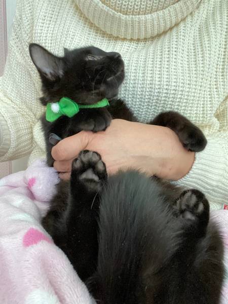 | 特徴(性格など) | 黒柄の男の子です。 毛足が長くまん丸お目目のおとなしい子です。 お母さん猫、4兄弟で保護しています。 エイズ、白血病検査でエイズ陽性とでました。 もちろん現在、発症はしておりません。 そして人に感染することはありません。 エイズウイルスキャリアの子でも、ストレスのない生活を送ることにより発症することなく、天寿を全うする子が多いと言われています。 できれば兄弟一緒に飼ってくれる方を希望してますが、1匹でもご相談下さい。 元気に過ごしています。 ・去勢手術済み ・ノミダニ回虫駆除済み ・エイズ(+)白血病(−) ・健康診断済み ・3種予防接種済み |
