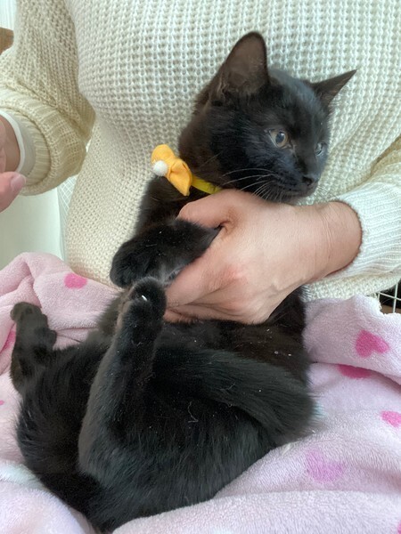 | 特徴(性格など) | 黒柄の男の子です。 2番目に元気な子です。 抱っこしながらお腹を撫でてあげると、すごく気持ちよさそうにしてくれます。 お母さん猫、4兄弟で保護しています。 エイズ、白血病検査でエイズ陽性とでました。 もちろん現在、発症はしておりません。 そして人に感染することはありません。 エイズウイルスキャリアの子でも、ストレスのない生活を送ることにより発症することなく、天寿を全うする子が多いと言われています。 できれば兄弟一緒に飼ってくれる方を希望してますが1匹でもご相談下さい。 元気に過ごしています。 ・去勢手術済み ・ノミダニ回虫駆除済み ・エイズ(+)白血病(−) ・3種予防接種済み |