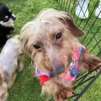 | 特徴(性格など) | 仮名前:志紅くん(しぐれくん) 犬種:ワイヤーダックス 健康状態:保護時、皮膚の状態が悪かったためフードなどで治療中ですが、 引き続き治療をしてくれる方。 顔はだいぶ毛が生えてきました。体がもう少し頑張って治療必要。 保護当時(2021年2月)よりも9月下旬の段階でだいぶ毛も生えキレイに なってきました。 脱毛があるため、甲状腺の病気を心配しましたが先日検査しましたが大丈夫でした。 性格:保護当時は他の犬が苦手で吠えてしまっていましたが、相性もあるようですが だいぶ他の犬に対して大丈夫になってきました。 1頭飼いが希望ですが相性チェックして大丈夫そうなら先住犬がいても大丈夫かと思います。 人間が大好きなので、かまってかまってと甘えてきてくれます。 重いですが抱っこ大好き。 |