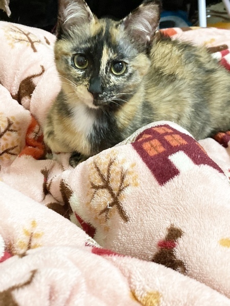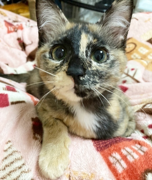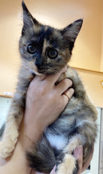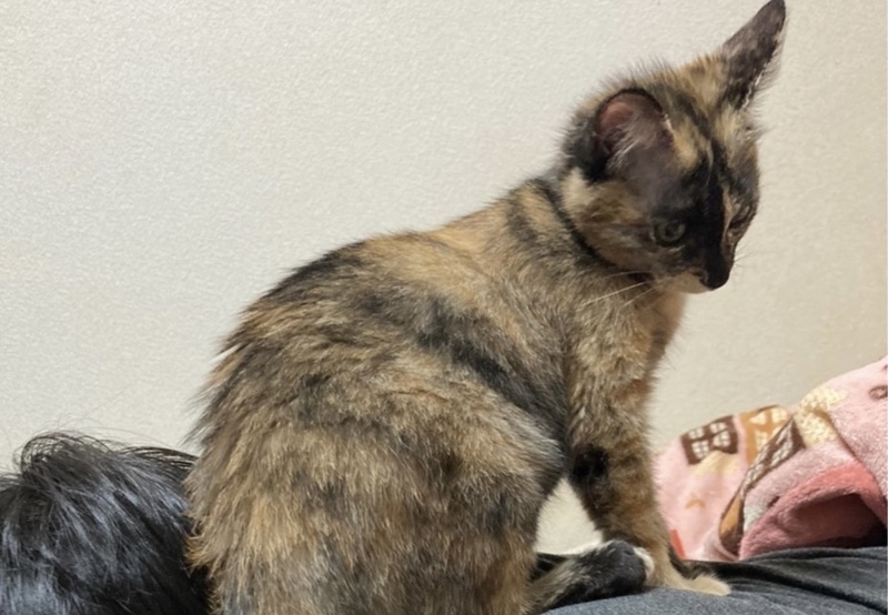 | 特徴(性格など) | 黒と茶色のモザイク模様が絶妙なサビ柄の女の子です。 首、お胸にポケットのような形の白い毛がチャームポイントです。 健康状態は良好で、食事も好き嫌いなくよく食べ、お腹の調子もいいです。 病院にて、初期検査の虫下し、レボリューション、ワクチン済んでおります。 ウイルス検査(エイズ、白血病検査)は幼齢のため、受けていません。 生後6か月までは、母猫の抗体がでて結果の信頼度が低い為です。 もし、事前に検査を希望される場合はお知らせください。 避妊手術は生後六ヶ月頃を推奨しているため、まだしておりません。 現在はボランティアさん宅で、過ごしています。人だけでなく、同居しているにゃんこ達とも仲が良く、お昼寝は先輩にゃんこ達に寄り添って寝ている姿がよく見られます。 動いているものを見たり、追いかけたりするのが大好きで、ボラさんにたくさん遊んでもらうととてもご機嫌なまこもちゃんです^^ 先住猫ちゃんがいらっしゃるお宅でも安心な猫ちゃんです。 月齢的には、ちょうど社会性を身に着ける時期になります。 猫同士で遊ぶことで、噛み癖がなくなったり、運動不足やストレスが解消されやすくなります。 また飼い主さんが留守にしている間の寂しさが緩和されます。 できれば2頭以上の飼育をおすすめしています。 |