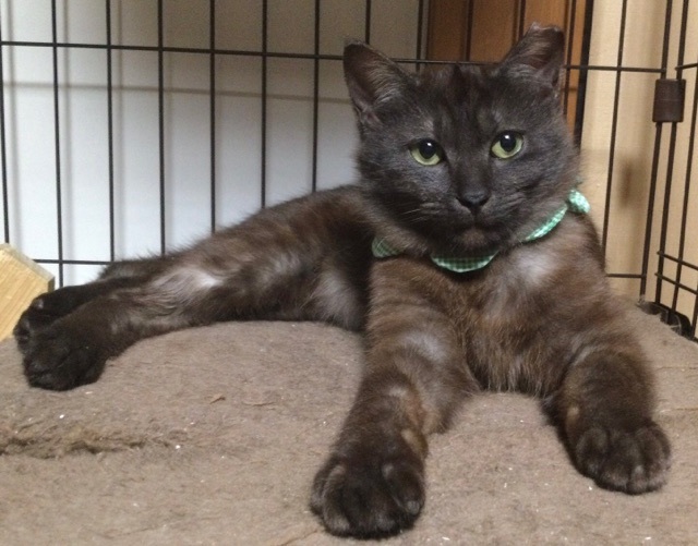 | 特徴(性格など) | ☆☆☆ご希望の方は、以下のアンケートフォームにご記入の上、送信してください☆☆☆ ねこ親希望アンケート→ http://chibawan.net/contactform_cat 【猫No.】3247 【愛称】グリン 【性別】オス 【年齢】推定6ヶ月(20/08頃生)(21/02/15現在) 【毛色】ブラックスモーク・真っ直ぐの長尻尾・さくら耳 【体重】2.5kg(21/02/15現在) 【状態】ノミダニ駆除済、駆虫済、トイレ躾済、ワクチン接種済(21/02/02)、血液検査済(猫エイズ(ー)、白血病(ー))、去勢手術済、マイクロチップ装着済 【保護場所】野田市 【日記】http://instagram.com/kemikemi1206 インスタグラム 【経緯】TNR現場から保護されました。 【性格】洋猫の血が入っていると思われる、ブラックスモークの毛並みと わずかにグリーンがかった瞳が美しい、整った顔立ちの美猫です。 被毛はダブルコートのように密に生えており、ふわふわの撫で心地です。 保護当時 全く人馴れしておらず、餌やりさんでも触ることができませんでしたが、根気よく話しかけ続け、一ヶ月を過ぎた頃から人馴れが急速に進みました。 現在、ケージの中では撫で撫でをせがんで喉を鳴らすまでに馴れました。 元来とても甘えん坊で、好奇心の強い子なのだと思います。 頭も良く、人の動きをじっと観察して預かり宅の日課を理解し、それに合わせようとする行動(時間になると進んでケージに入るなど)もみられます。 しかし、人との関わりが全くなく、お外で暮らしていた子です。 人の急な動きや、知らない人間の出入りは警戒しますので、グリンを怯えさせないよう、充分環境に配慮して下さるご家庭を希望します。 最初は必ずケージから馴らし、信頼関係が築けよく懐くまで ケージから出さないで下さい。 馴れないうちにケージから出してしまうと、家庭内野良となってしまい 人馴れが進まない可能性があります。 超多頭飼育の出身らしく、猫が好きで 預かり宅の先住猫を恋しがって追いかけます。 先住猫がいても問題ありません。 預かりの印象ですが、小さなお子さんのいらっしゃらない、大人だけの落ち着いた雰囲気のご家庭がグリンには合っているように思います。 グリンは、まだまだ育ち盛りで日々目まぐるしく成長しています。 グリンの人馴れしていく過程や育猫についての悲喜こもごもを、インスタグラムにアップしています。 グリンの性格や、家猫修行に励む日々の様子が垣間みえますので、是非ご覧下さいませ。 【その他】完全室内飼育で終生愛情を持ち、グリンに合わせた生活スタイルで暮らしてくださる方、定期的なワクチン接種や、その時々において必要な医療処置等の健康管理を約束していただける方からのお問い合わせをお待ちしております。 可愛いグリンに会いに、預かり宅までいらして下さい! ※ 大変申し訳ないのですが、猫が幼齢のため、58歳以上のみの世帯の方からのお申し込みはお断りすることがございます。 |