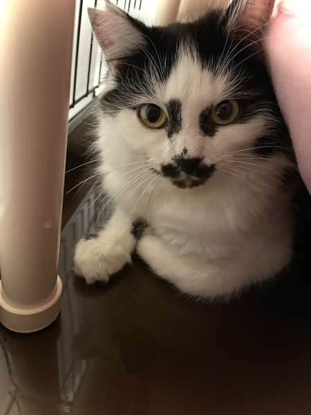 | 里親募集する理由 | 多頭現場へTNRのため介入、去勢手術時に栄養状態不良がみられ、緊急保護となりました。 インパクトのあるお顔で、すっかり成猫だと思いこんでいましたが、2020の春頃生まれの仔猫でした。 半長毛のため、見た目にはわかりにくいですが、保護当初は背骨にはっきり触れるほどガリガリでした。 日ごとに回復していき、実はとっても甘えん坊なことが判明!お膝に乗ったり抱っこが大好きで、喉を鳴らして気持ちよさそうに甘えてくれます。 このまま室内で、幸せに暮らしてほしいと願い里親様募集させて頂くことにしました。 |