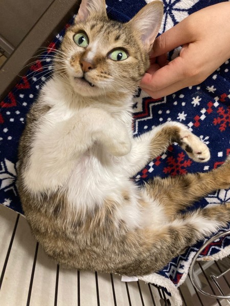 | 特徴(性格など) | 2020.6.11生まれ(推定) 毛色:キジ白 好奇心旺盛、人も大好きキジ白女子。 ボラさんになでなでしてもらうのも大好きです♡ 少し茶系の入ったキジ柄に首からお手てにかけて真っ白ふわふわなおお毛毛。 お口周りの柄がチャームポイントです♪ |