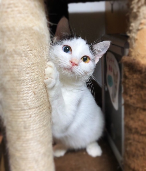 | 特徴(性格など) | ◆シェリーちゃん 人慣れしたオッドアイ白地斑女子 〇沖縄県内で保護されました。 〇1歳くらい(推定)の白地黒斑の女の子です。 〇長い尻尾と、オッドアイがチャームポイントです。 〇人馴れしていて、抱っこもできます。 ★ワクチン済み、不妊手術済み ★猫エイズ、猫白血病ともに陰性。 ★マイクロチップは発育と体調をみて適宜おこないます。 ★★Zoomアプリを使用して、リモートお見合いを設定することも可能です。まずはお申込みください★★ |