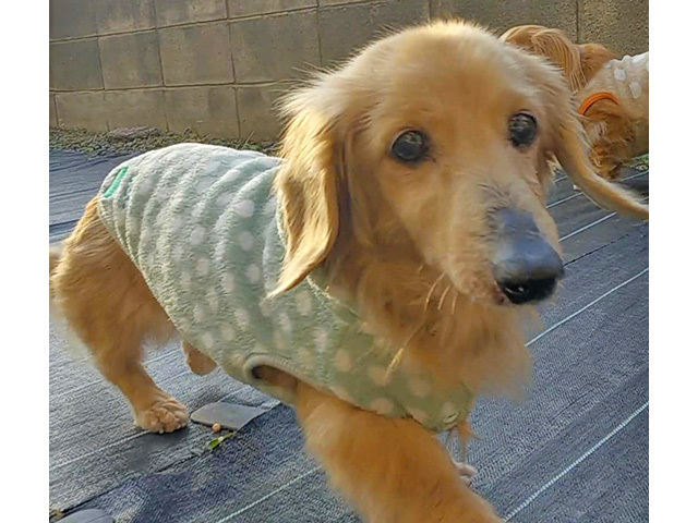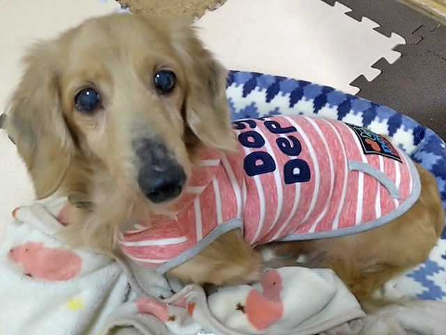 | 特徴(性格など) | ■ 基本情報 ・管理番号 【210112-02】 ・犬種・性別・名前(仮) Mダックス ♀ クララ ・年齢・体重 推定8~10歳 体重 4.4kg ・特徴 毛色はクリームより少し濃いめで、柔らかい毛質です。 ・性格 普段はおとなしく物静かですが、うれしいと一人ではしゃいだりもします。 抱っこなど、苦手なことにはイヤと言える女のコらしい一面もあります。 ■ 暮らしについて ・日常過ごす場所 普段は室内フリーで過ごしています。 ・食事 肝臓食を食べています。 現在はロイヤルカナン肝臓サポート(犬用療法食)のカリカリと缶詰を混ぜています。 お肉系のオヤツは控えていて、お芋やクッキー・ボーロなどをあげています。 ・トイレ トイレシートの認識はあるようですが、成功率はまだ低めです。 寝起きやごはんの後など、トイレタイムはほぼ決まっているので、そのタイミングにオムツを使いながら練習しています。 最近は外でもするようになってきました。 ・散歩 大好きで、楽しそうに歩きますが、そんなに早くは歩けません。 のんびりお付き合いいただけたらと思います。 ・お留守番 フリーで問題ありません。今は留守番中はオムツをしています。 ・外出 キャリーでの移動は問題なくできますが、車酔いする事があります。 ・お手入れ 一度だけですが、私がシャンプーした際にとてもイヤがりました。 それ以来トリミングサロンでお願いしていますが、大きな音のドライヤーは怖がるそうです。 また、歯が悪いためか口回りを触られるのを嫌がります。 歯磨きができないので舐めるタイプのケア用品を使っています。ブラシなどは問題ありません。 ・他犬との関係 気にしていないので問題なく過ごしています。 ・人との関係 人が好きですが、構われ過ぎるのは苦手です。 マイペースですが、吠えたり怒ったりした事はありません。 ・お願いしたいこと 後ろ脚は外方脱臼があります。右 グレード1 左 グレード2 背骨に変形性脊椎症がみられるため、体重管理と床の滑り止め対策をお願いします。 今の所、日常生活に支障はありません。 腎臓食の継続をお願いします。 ■ 医療管理について(実施日) ・混合ワクチン 〇 6種(1/12) ・狂犬病予防注射 × (未定) ・フィラリア抗原検査 - (1/8) ・不妊手術 × (引取時不妊手術済み) ・マイクロチップ 〇 (3/9) ・健康チェック 〇 (1/12) ・スケーリング × (未定) ・便検査 × ・その他の医療措置 フラジール(1/4) 駆虫ドロンタール(6/12) ネクスガード(1/12) ・必要な継続医療 門脈シャントと診断されましたので、ごはんは腎臓食になります。 定期的に血液検査をする必要があります。 現在は自宅で輸液(皮下点滴)をしていますが、病院によっては通院での処置になる場合もありますので、今後かかる病院とご相談の上、治療の継続をお願いします。 また、現状では麻酔での口腔処置ができないため歯の状態が悪いです。 数値が良くなって安定したら抜歯などの処置をお願いします。 ・現在の一時預かり先 千葉県松戸市 ・預かりスタッフ まめっち ・預かりブログ まいにちわんこ「クララちゃん」(2021/1/19~) ・https://ameblo.jp/pucchobikke/theme-10114138057.html ・引取時の様子 ・http://chibatarianna.jugem.jp/?eid=6848 |