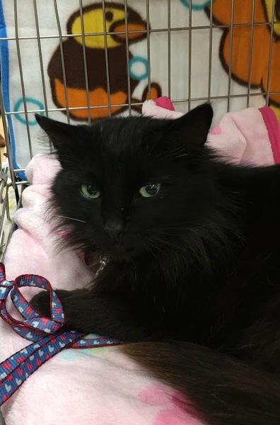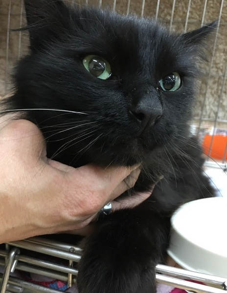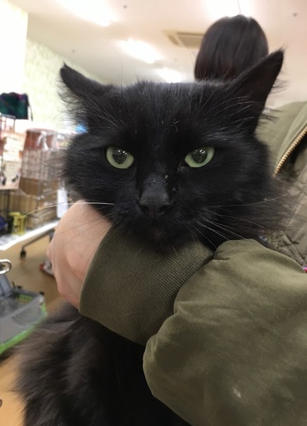 | 特徴(性格など) | とても人懐っこい黒猫くんです。 黒の長毛で尻尾もフサフサです。 目の色はグリーンです。 ヒゲの一本だけが白いです。 歯が綺麗なのでまだ若く一歳ぐらいのようです。 人が大好きで構って欲しい子です。 |