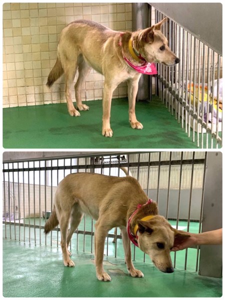 | 特徴(性格など) | 中型雑種、淡茶色の可愛い優しい女の子、大人しく人馴れしていてまだ5歳未満位に見受けられます。 現在の体重は見た目の推定になりますが大体15キロ前後位でしょうか。 普通に飼育されていた犬ではないと思われ、首輪や係留やリードでのお散歩の経験が乏しいように見受けられました。放し飼いか、放浪期間が長かったのかもしれません。お座りやマテなども知らないようです。 ですが人馴れはしている様子で尻尾を振って寄ってきますし、誰が撫でたり触ったりしても大丈夫で大人しく、手から上手におやつも食べてくれてとても愛らしいです♡そっと寄り添って甘えてきます。 穏やかで優しく、人や他犬に吠えたりもしていませんฅ•ﻌ•ฅ とても一緒に暮らしやすい子だと思います。 優しい職員さん方が怖くないよ、今度こそは幸せになれます様にと毎日触れ合いながら、一生懸命にお世話してくださっています。 リードを付けた経験が無いのか?収容当初はリードを見ても喜ぶどころか、付けるとまるで蛇か何かのように非常に怖がってパニック状態になり、リードを噛み切ろうとして嫌がって、外すと急いでケージに逃げ込んでしばらく怯えて出てこなくなってしまう状況でした(>_<) 過去によほど怖い、悪い思い出があるのか知る由もありません( ; ; ) ですが職員さんが根気強く練習を続けてくださり、今ではリードを見せると尻尾を振って犬舎の扉に来るようになりました(^^) まだ引っ張ると首を振って嫌がったり、行きたくないと後退りしたりリードを噛んだりするものの、管理所内や運動広場、直ぐ横ですが外の遊歩道まではお散歩出来ています! リードの引きも無く歩けるようになり、今度は逃げようとする仕草が見られるので、逃走・脱走には益々の注意が必須ですm(_ _)m 新しい環境に慣れるまではまだしばらく時間を要するかと思われます。 物音や知らない場所にビックリして怖がって逃げよう逃げようとする可能性も大いにある事だと思いますし、急な走り出しや高い塀や壁・柵の飛び越えや、急な方向転換・首を振って後退りからの首輪抜け、胴輪抜けにもご用心で、どんな子であっても脱走、逃走には充分な注意と配慮が必要ですm(_ _)m 適切に制御し、躾や朝晩のお散歩、運動の時間をしっかり取ることの出来る、沢山優しく触れ合って頂ける方、 先ずは室内でじっくりと時間を費やし触れ合い、ゆっくりと信頼関係を作っていく事の出来るご家庭を希望しております。 人間が焦らずにゆっくり長い目で見守りながら、愛情を持って接すればこの子ならきっといつか新しい家庭に馴染んでいけるのでは、と思い祈っています。 辛かった過去がある事も踏まえ、人は怖くないんだよと、人を信じてくれる様に、例え長期戦でも広い心でドンとこい^_^と仰って頂ける方、この子を尻尾フリフリ♪ニコニコの笑顔にしてくださる方、いらっしゃいませんか? どうぞ宜しくお願い申し上げますm(_ _)m ⭐️必ず室内飼育で、譲渡後には速やかな病院受診・健康診断(血液検査、尿便検査、ノミダニ・フィラリア予防やシャンプー等)避妊手術、混合ワクチンをする事が可能な、なるべくお留守番が少ない、沢山優しくスキンシップやコミュニケーションで触れ合っていただけるご家庭。 ⭐️室内でのトイレの躾も1からとなります。 管理所ではほぼ100%ペットシートに排泄が出来ています(^^)お利口さんです♡ ※でも新しい環境に慣れるまではトイレの失敗もあるかもしれません。 何かと手がかかり大変だと思いますが覚悟と根気・理解で受け入れて下さる方。 ※譲渡後にはお早めの避妊手術、その際に歯石除去も一緒にお願いしますm(_ _)m ⭐️出来れば中型〜大型犬の飼育経験があり愛情を持って接することが出来る方、朝晩のお散歩や運動、スキンシップやコミュニケーションに充分時間をあてられる方、もし怖がってなかなかお散歩が出来ない場合には、引きこもりにならぬようトレーニング教室なども視野に入れて考えてくださる方。 何卒宜しくお願い致します。 ※混合ワクチン、フィラリア予防実績の有無は不明です。フィラリア陽性の可能性も0では無くあり得る事となります(>_<) ⭐️(今のところ吠えませんが)吠えても大丈夫なご家庭。 以上の点を踏まえ、この子の置かれている状況、寂しかった、傷付いているであろう心をご理解のうえ、全て受け入れ寄り添っていただけるご家庭で終生可愛がっていただきたいと願っております。 保健所収容された全ての子達は身勝手な人間による被害者であり、何も悪くありません( ; ; ) 家族の一員として生涯大切にしてくださるご家庭とのご縁が結ばれ、嫌な檻の中では無い、優しい家族の皆さんとずっと一緒に居られる温かなお家が見つかります様に。幸せになれます様に☆⭐︎ 1日も早く温かな愛情を目一杯注がれながら、元気に幸せに生きてほしいです。人間より遙かに短い生涯です。 冷たく硬いコンクリートの上、狭い檻の中でひたすら優
