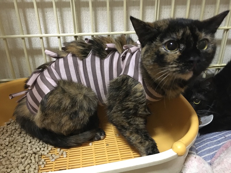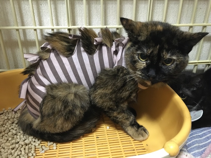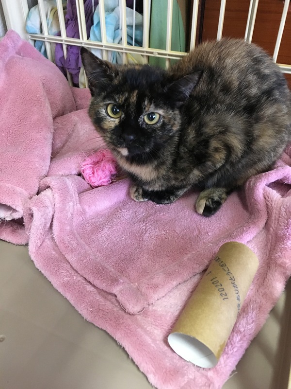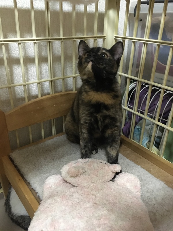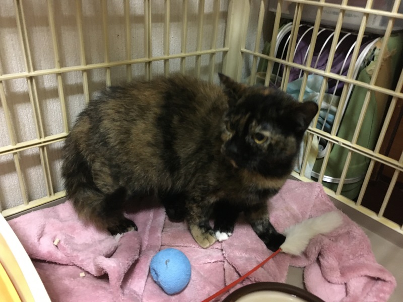 | 特徴(性格など) | 個性的な柄のサビ猫です。 顎の下が2色に綺麗に分かれてます。 性格はビビりなので若干攻撃的。 シャー!は言いますが触れます。 抱っこはキライなので断固拒否! その代わり全身のお触りは仕方なさそうに触らせてくれます。 ベタベタするよりクールに人間を観察してます。 ちゅ〜る大好きで食い意地張ってます。 ご飯の催促の時だけ鳴きます。 一緒に保護された月齢の近いオス猫とはいつもくっついています。 同部屋の5歳のサビ猫のお姉様方とはサビーズとして結託して猫の集会をしていますので、猫の同居は大丈夫そうです。 |
