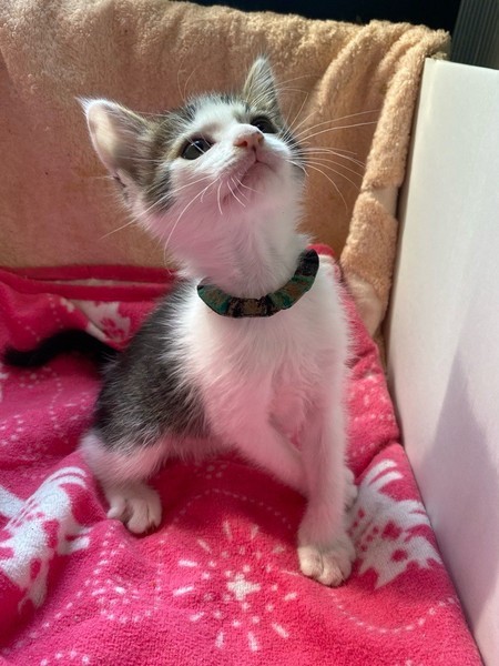 | 特徴(性格など) | 天真爛漫、陽気な「モヒート」くん❤ 生後10日ほど200g弱での保護、人の手で育てられ、素直で元気な甘えん坊♪ 遊んで貰うの大好き♪探検大好き♪お膝のうえ大好き♪ 現在ドライフードやパウチ練習中ですが、なかなか食べてくれず、一日4回離乳食中。 <推定誕生日:3月上旬> |