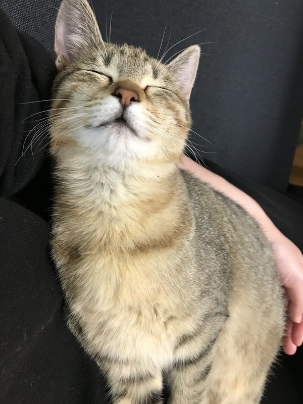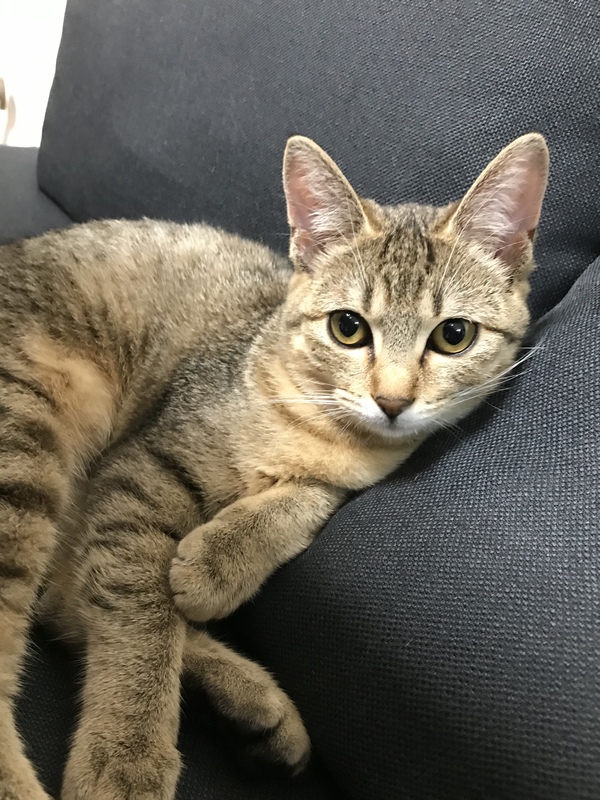 | 特徴(性格など) | キジ柄の女の子です。 とても人懐っこく、来客にも臆せず膝の上に乗ったり手を舐めにいったりします。 もちろん飼い主の膝やお腹の上に乗ったり、顔や手もよく舐めにきます。 ちょっと臆病なところもありますが、慣れるのは早いタイプだと思います。 痩せ型でスマートな体型です。 |