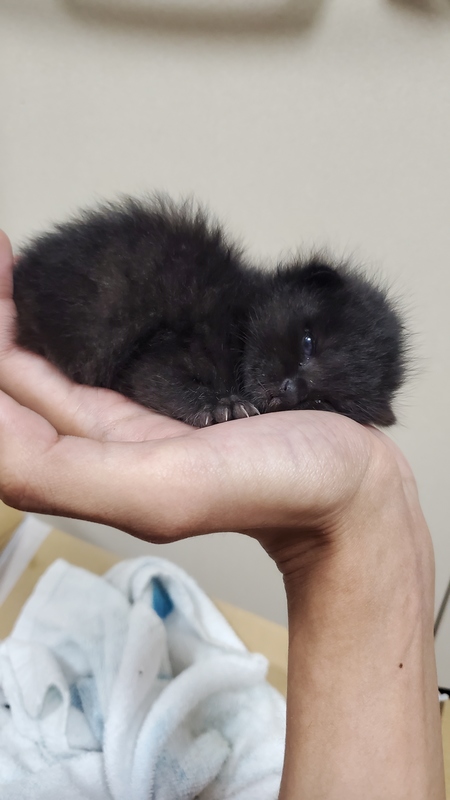 | 特徴(性格など) | ミックス 黒 200g 手を差しのべるとよじ登ってくる甘えん坊です。 ノミダニ駆除済み 左目の目やにが出るため、目薬処置中 |