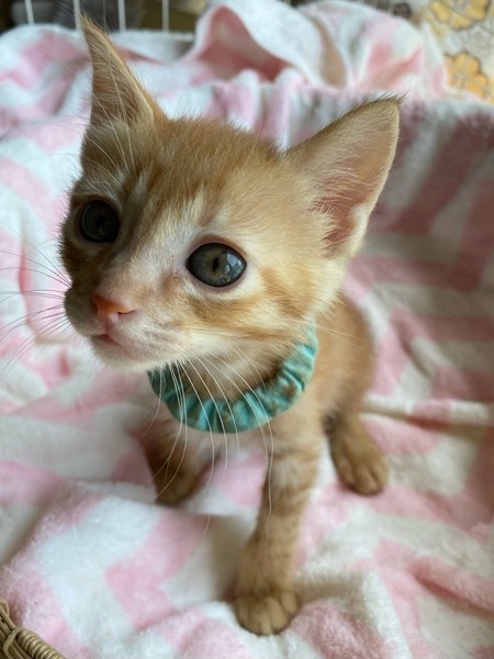 | 特徴(性格など) | ボクがいちばーーん!!の甘えん坊「ターコイズ」くん❤ 嫌なことは全力で拒否!大好きな離乳食はボク一番!な意志しっかりの男のコ♪ でもお休みお時は兄弟たちとくっついて♪ 現在ドライフードやパウチ練習中。パウチも自身で食べてくれるようになっていますが、まだまだ摂取量が足りず、一日4回、哺乳瓶やシリンジ等での離乳食を与えています。 <推定誕生日:3月中旬> |