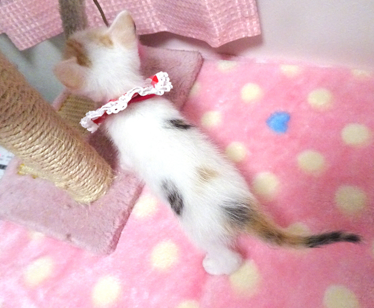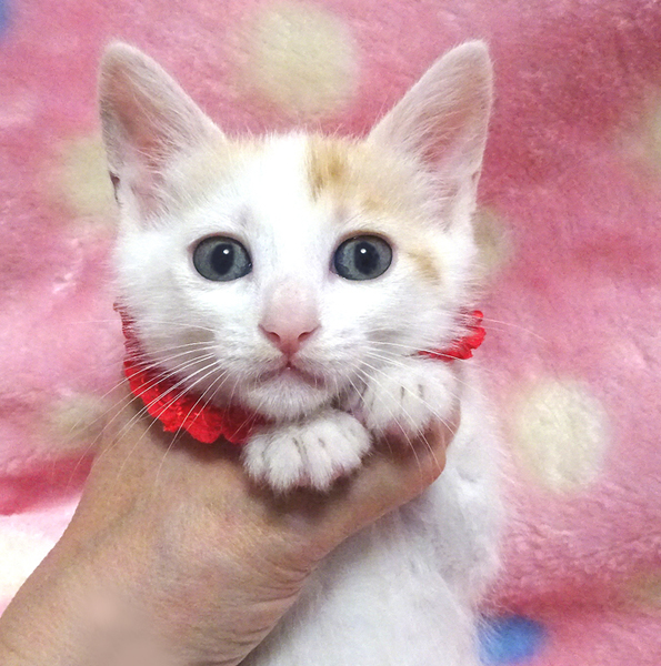 | 特徴(性格など) | 【猫の仮名】ユリちゃん (担当 松嶋) 【毛色・柄】白三毛、長くて真っすぐなシッポ 家猫の母親の元で育ったので栄養状態が良く、きれいな子です♪ 小さくてもトイレができる賢い子です♪ 猫を飼うのが初めての方でも大丈夫です♪ 走っても大丈夫なペット可のお住まいで、猫だけのお留守番が長時間でないご家族を募集しています。 元飼い主の希望により、お一人暮らし、同棲中の方、ご高齢の方には譲渡できません |