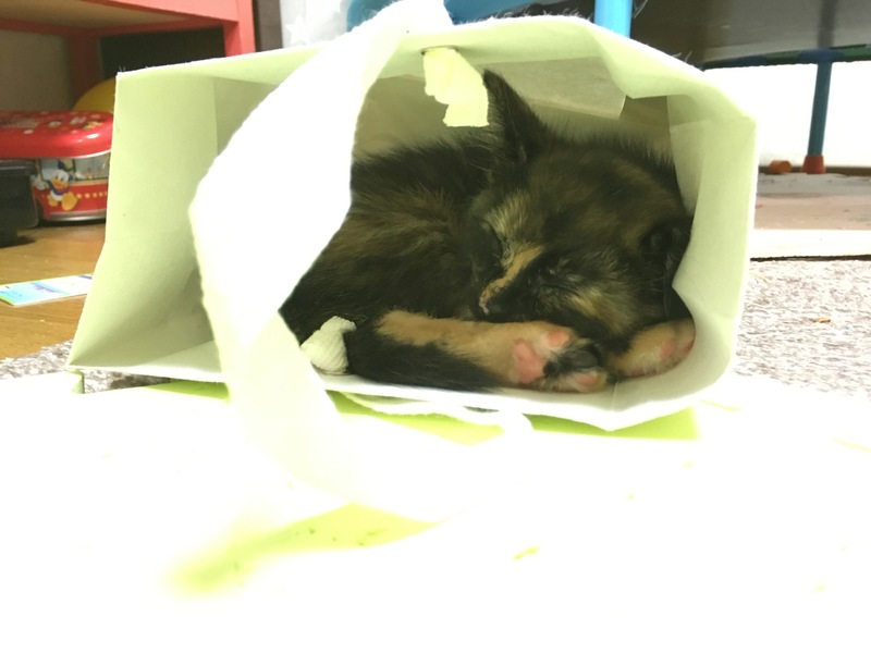 | 特徴(性格など) | 900gのサビちゃんです。 甘えたで、ゴロゴロ言って膝に乗ってきて寝ます。 ご飯もしっかり食べ、元気に遊びます。 |