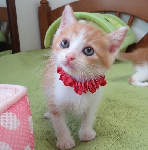 | 里親募集する理由 | 動物病院の先生から、病院のトリマーさんの知人が赤ちゃん猫4匹保護して困っているので助けて貰えないかと頼まれ、引き受けました。 | ||