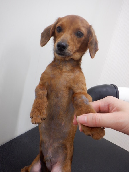 | 特徴(性格など) | 名前:ケン 年齢:推定2歳 体重:3.2kg 毛色:レッド チワワ、ダックス、トイプードルのMIX。 吠え癖があり、吠え声はかなり大きいですが注意をするとやめてくれます。 壁や落ちているものなど、かじっていたずらする場合があります。 わんちゃんとの相性があります。 マイペースな性格です。 だっこされると大人しくなり、寝てしまうことも(#^.^#) おトイレはペットシーツで出来ます。 おもちゃで激しく遊んだり、わんちゃん同士でも遊んだりします。 お散歩はまだしたことがなく、徐々に慣らしていこうと思います。 劣悪環境の中で生まれ育ち、辛い思いをしてきたケンくんなので、健康状態の欄や譲渡条件をよく読んでのご応募をお願い致します。 ※50歳以上の方は必ず後見人をたてて下さい。 アカラスのため治療中です。 3日に1回ほどシャンプーが必要です。 継続して治療して頂ける方を募集しています。 5種混合ワクチン 不妊手術 フィライア検査:陰性 マイクロチップ装着 血液検査:異常なし ごはんはよく食べます。 皮膚が良くなるようにサプリメントもあげています。 |