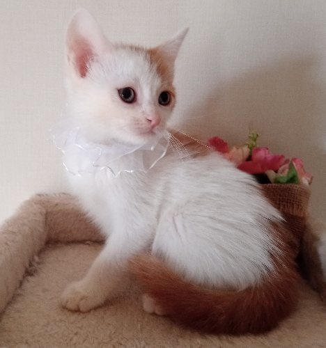 | 特徴(性格など) | 人間がミルクで育てたため、人慣れは抜群で、甘えん坊です。しっぽは長いです。 元気ですが、ぼんやりさんなところもあります。 キャラメルくんとはきょうだいで、とても仲良しです。2頭一緒のお迎えを歓迎します。 |