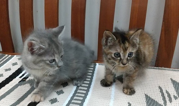 | 特徴(性格など) | 二週間程前に裏庭で草に絡まり泣いている子猫が見つかり保護しました。 初めは怖がって2匹で怒っていましたが、今は落ち着いてご飯もよく食べよく遊ぶようになりました。 1匹はグレー縞で顔がまん丸でやんちゃな女の子、もう1匹はキジ柄のおっとりした女の子です。 生後1ヶ月半くらいの可愛い姉妹猫ちゃんです。 シャンプー・ノミダニ処置・虫下し処置は済んでいます。 親からはぐれた2匹姉妹なので一緒のお家で飼って欲しいと思っています。 まだ小さいのでワクチンはしていません。2ヶ月過ぎてからの接種となります。 |