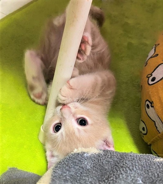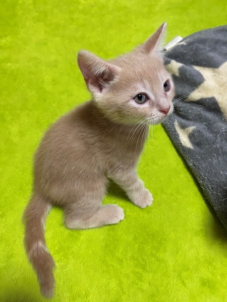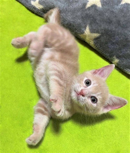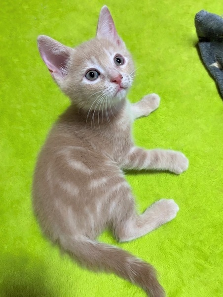 | 特徴(性格など) | お腹の横にうずまき・明るいミルクティー色の男の子 好奇心旺盛・元気な男の子 遊ぶ事が大好き・棚の上に登りたくて頑張るも、途中で「ぼちっ」と落ちてきたり・・ トイレ掃除をすると「じぃぃ」と観察。 面白い子です。 |