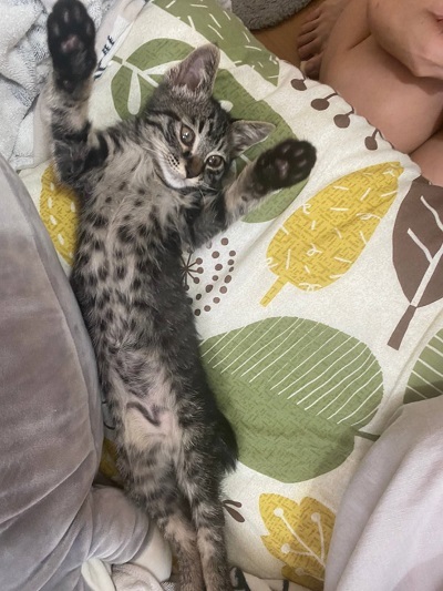 | 特徴(性格など) | 人が大好きで、目を合わせると嬉しそうにゴロゴロ言いながら登ってきます。 触ってあげてるとすぐ膝で寝てしまいます。 |