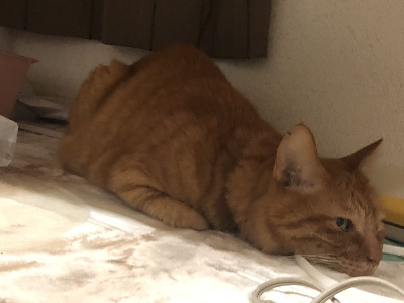| 特徴(性格など) | 茶トラの尻尾が長い子です。 基本大人しい子で暴れたりしません |