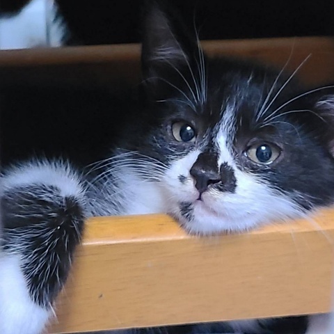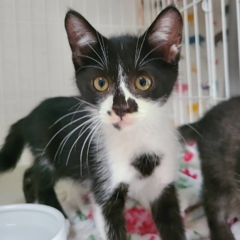 | 特徴(性格など) | ありすと姉弟です。ユニークな黒白柄、あんよの白ソックスとホッペの黒い模様がチャーミング。 すっかり人にも馴れて可愛いお顔や仕草を見せてくれます。撫でられるのが大好きですぐにヘソ天して甘えてくれます。 元気一杯で、よく食べよく遊びます。 意外にすばしっこいので脱走防止は常に心がけていてくださいね。 終生愛情を注いでいただける優しいご家族様に迎えていただきたいです。 |