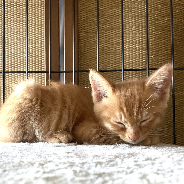| 特徴(性格など) | 保護したばかりの時は怒っていましたが、だいぶ慣れてきました。 自分からはあまり来ませんが、寝起きなど さみしくなると呼びます。 抱っこ、ナデナデ好きなようです。 (サイレントシャーをしますが抱っこナデしてるとウトウトしてしまうツンデレくん) 濃いめの茶トラ、モフモフ感も多めです。 |
