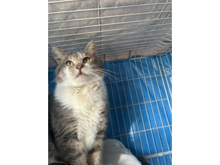 | 特徴(性格など) | 白猫の仔猫です。鼻としっぽが薄い茶色で、しっぽはうっすらトラ模様があります。 おもちゃで遊ぶのが大好きで、元気いっぱいです。 カリカリの餌を食べています。トイレもほぼ覚えました。 |