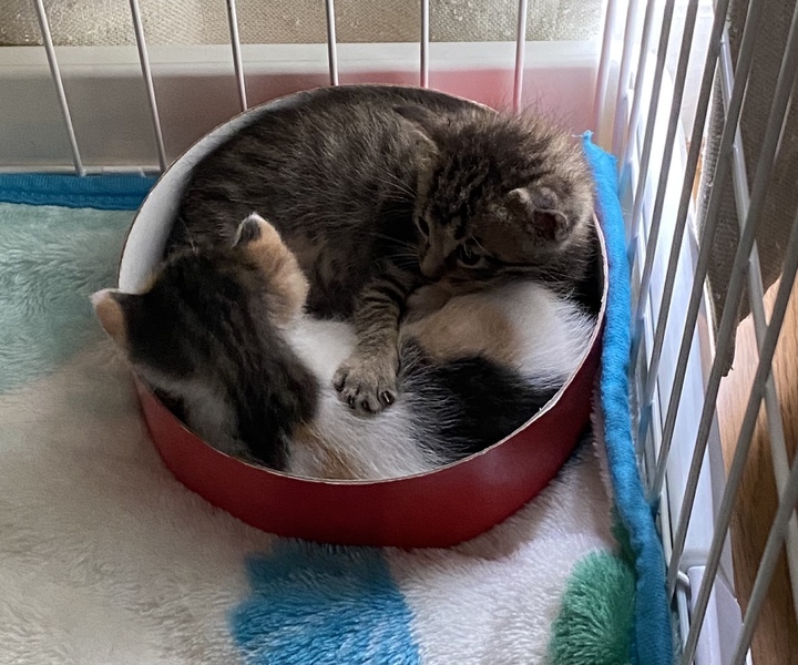 | 特徴(性格など) | 三毛♀とキジ♂の仲良し兄妹 性格は積極的で、遊ぶの大好き?人が大好きな、かまってちゃん。 |