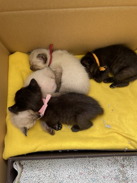 | 特徴(性格など) | 黄色リボン→プリンちゃん ピンクリボン→りぼんちゃん 子猫なので性格は未知数ですが 乳飲み子で保護していますので 人馴れしています。 BLACK CATは甘えん坊の子が多いです♡ |